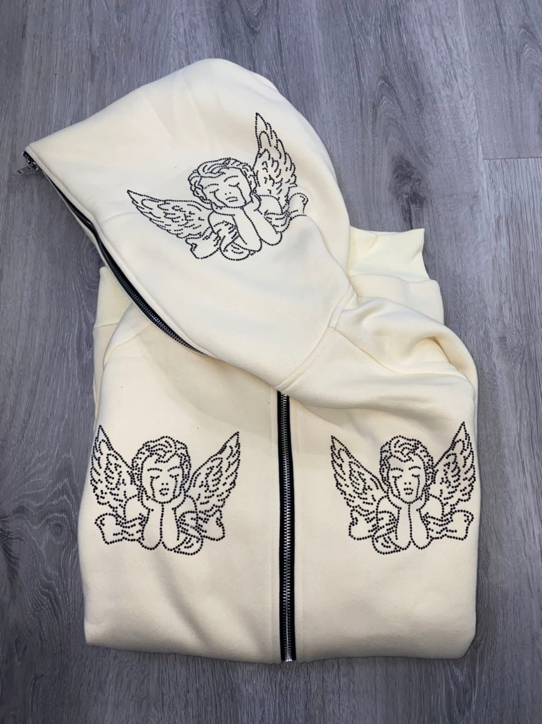 Full-Zip Hoodie with rhinestone design on hood.